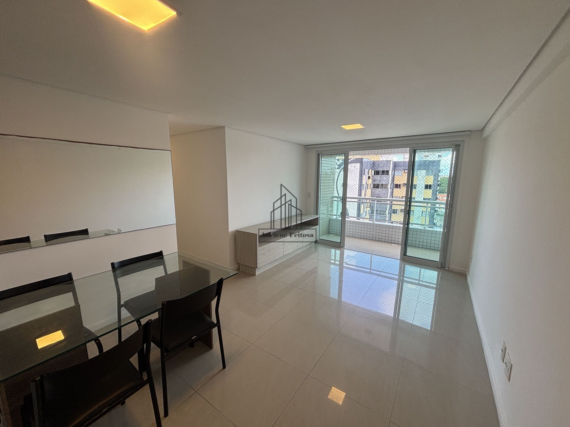 O apartamento tem 80m², 03 suítes e uma delas reversível, varanda, móveis projetados em todos os ambientes, aparelhos de ar condicionado em 2 qurartos e 02 vagas de garagem.